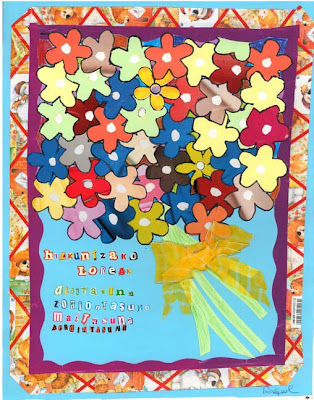 Metidos en harina, hoy a nadie ha de extrañar que una maestra de educación obligatoria proponga a sus alumnos como materia de dibujo, de arte plástica, el recorte y recomposición. Pero aunque no extrañe, sí nos cabe el asombro de comprobar cómo estos materiales son capaces de proporcionar forma al mundo artístico de unos educandos que, aunque no hayan alcanzado la madurez creativa, sí muestran estar inmersos en la corriente de pensamientos, mitos y ritos y convulsiones de nuestro tiempo, que es el suyo.